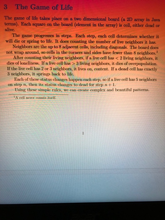 I am learning concurrent programming in java and writing a simulation for game of life. But i have a problem to calculate the number of neighbors correctly. Conways s game of life is a cellular automation method created by john conway. Active 8 years 8 months ago.